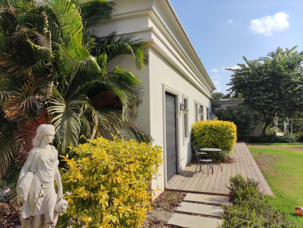 מעבר לאסתטיקה, הקרניז החיצוני מייצר מסגור מרשים שמעניק נוכחות ומגדיר את קווי המתאר של הבית בצורה מדויקת ומוקפדת.